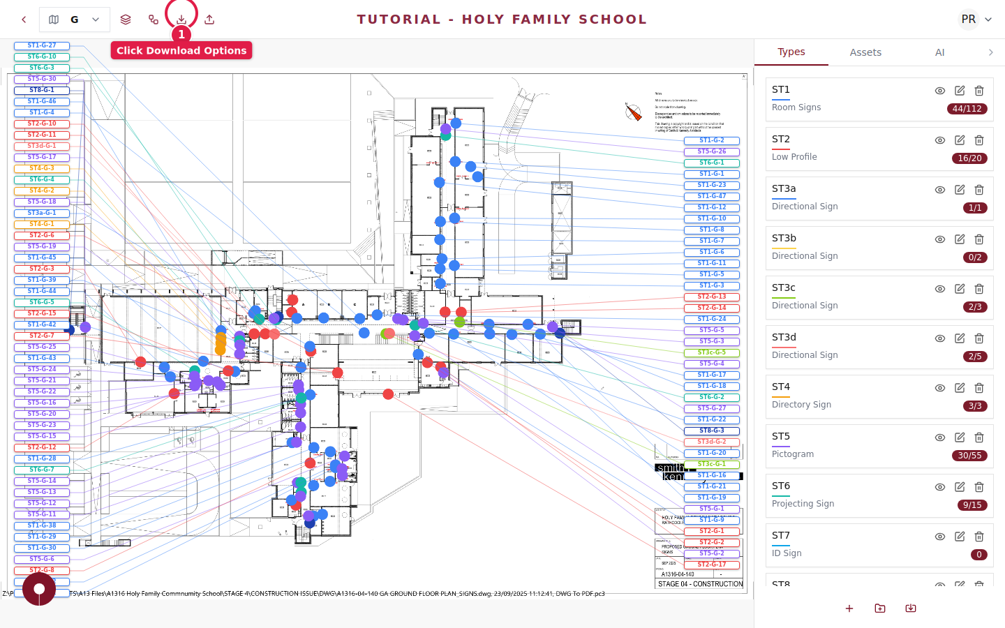Learn how to download floorplan PDFs in multiple sizes, generate asset reports, export bills of quantities, and produce production-ready artwork files.